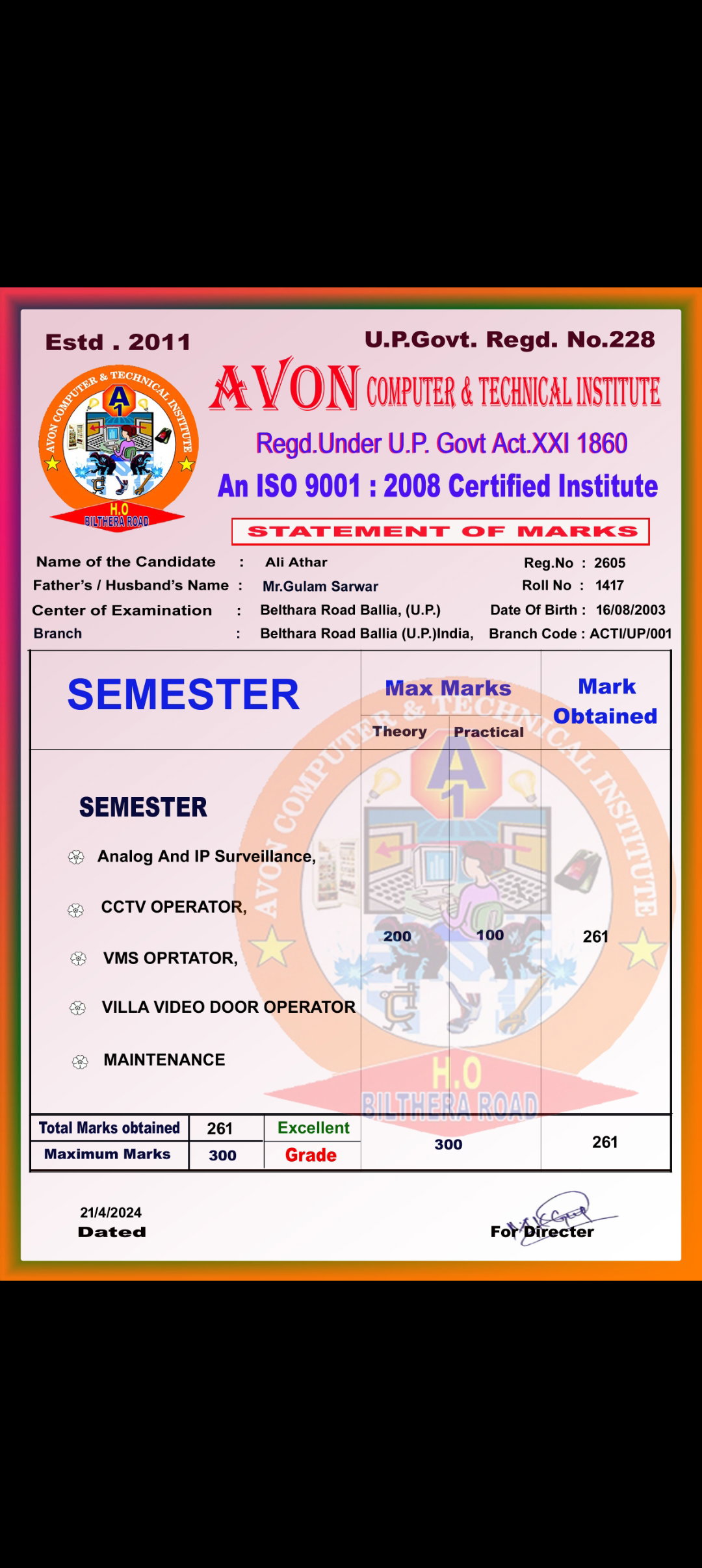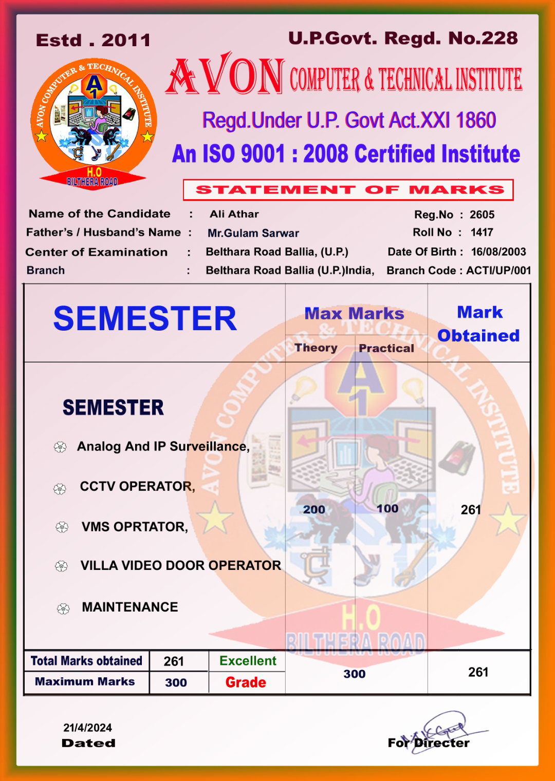 Avon Computer Technical Institute in Belthara, Ballia is a reliable name in the industry as they aim to deliver the best experience to their customers. This has helped them build up a loyal customer base. They started their journey in 2008 and ever since, we offer course: CCC, ADCA, DCA, CFA, TALLY